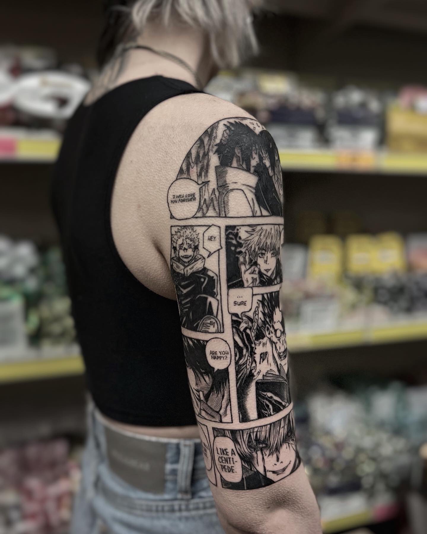 Elisa Baratta On Twitter Manga Panel Half Sleeve Tattoo By Me On Silvia Let Me Know What You Think Milano Milanotattoo Italy Italian Manga Mangpanel Mangatattoo Anime Animetattoo Mangapaneltattoo Blackwork Tokyoghoul Naruto